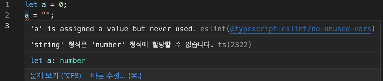 - 뿐만 아니라 타입 추론도 가능하게 해줘요. 타입 추론이란, 타입이 명시가 되지 않았을 때 컴파일러가 알아서 해당 타입에 대해 추론을 하는 것이에요.